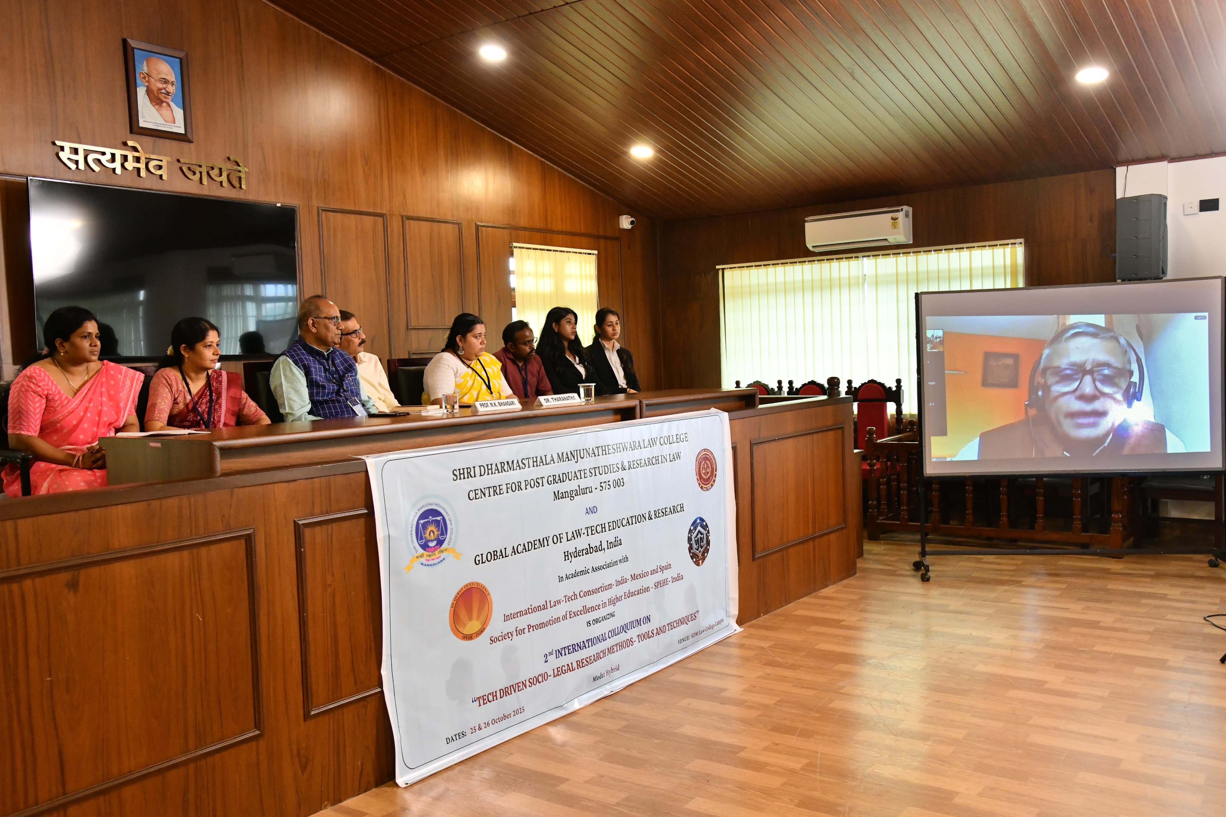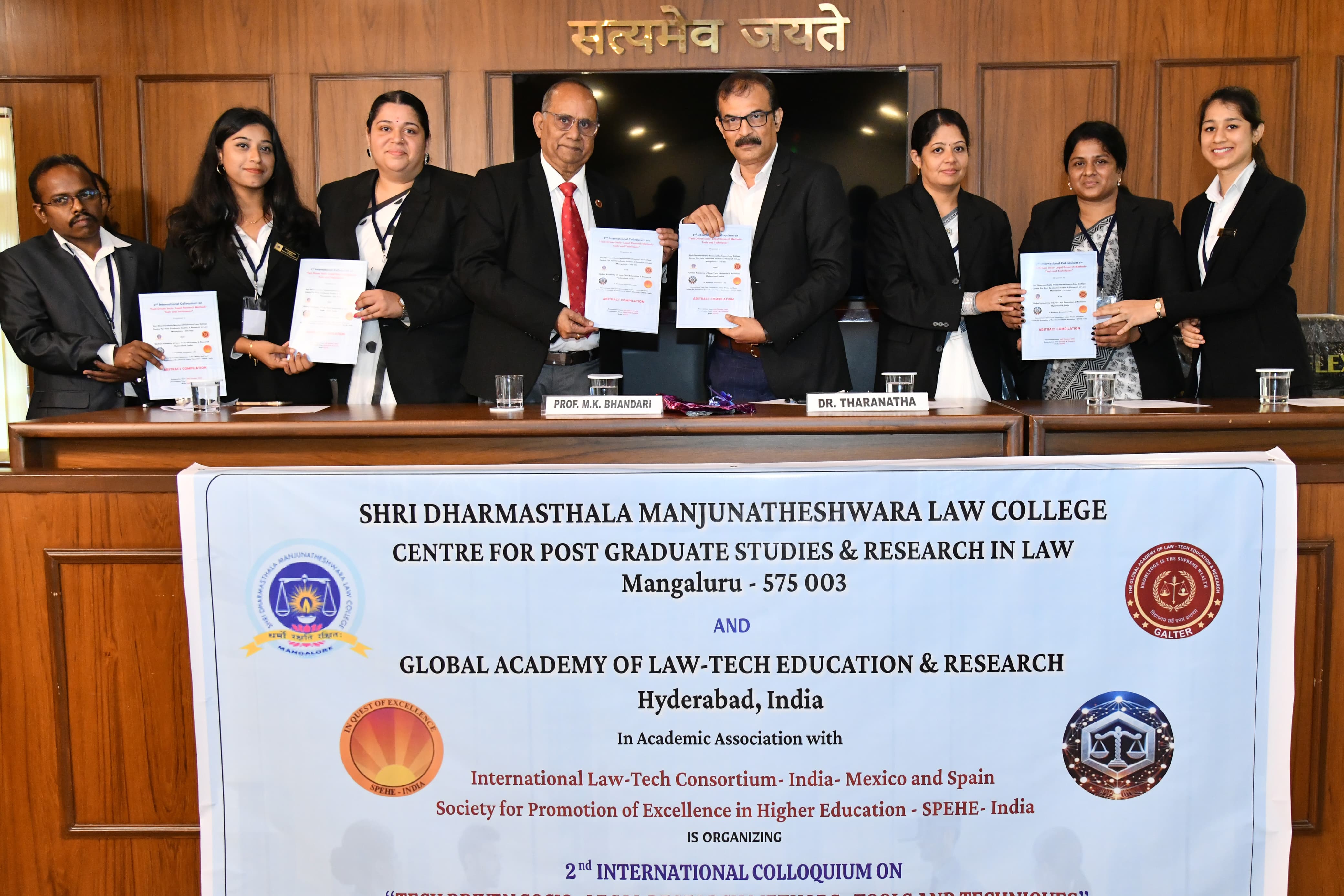 Shri Dharmasthala Manjunatheshwara Law College, Centre for Post-Graduate Studies and Research in Law, Mangalore, in collaboration with the Global Academy of Law-Tech Education & Research (GALTER), Hyderabad, organized the 2nd International Colloquium on Tech Driven Socio-Legal Research Methods – Tools and Techniques on 25th and 26th October 2025. The event was inaugurated by Hon’ble Justice Dinesh Maheshwari, Chairperson, 23rd Law Commission of India; Former Judge, Supreme Court of India; and Former Chief Justice of the Karnataka and Meghalaya High Courts.