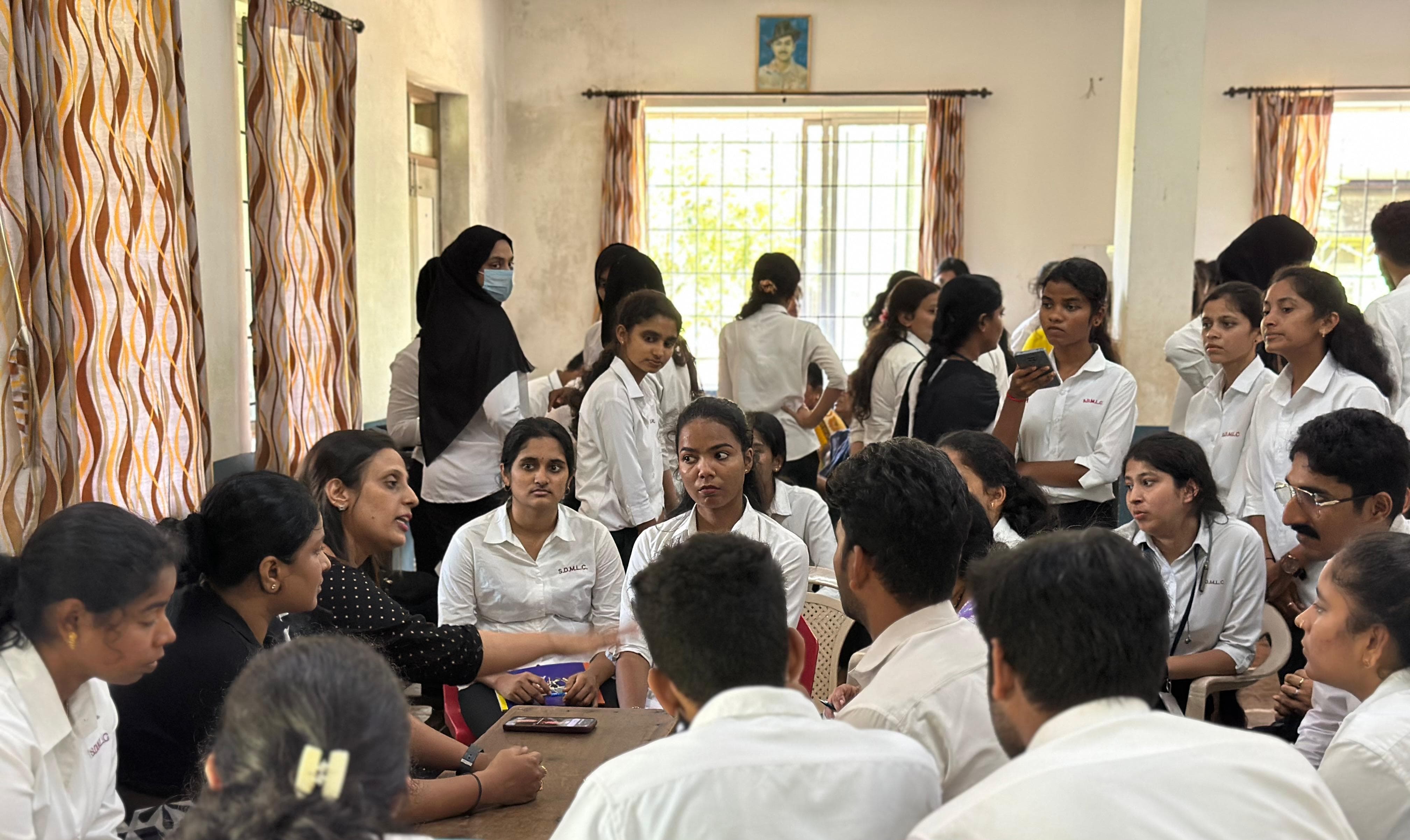 The Legal Aid and Extension Cell / Arbitration Centre of SDM Law College, Mangalore, in association with the District Legal Services Authority (DLSA) and the Mangalore Bar Association, organised a Legal Aid Camp on 9th October 2025 at Vamanjoor. Smt. Zaibunnisa, Senior Civil Judge and Member Secretary, District Legal Services Authority, Dakshina Kannada, inaugurated the programme. In her address, she highlighted the functioning of the DLSA and encouraged the gathering to make effective use of legal awareness initiatives. Dr. Akshatha Adarsh, Chairperson, Dakshina Kannada Child Welfare Committee, served as the Chief Guest and spoke on the care and protection of children, sharing valuable insights and practical examples related to POCSO cases. The programme was presided over by Dr. Tharanatha, Principal of SDM Law College, who lauded the proactive role of the DLSA in supporting legal aid initiatives. He also recalled his own experiences participating in legal aid surveys during his college days and motivated students to extend maximum support to the public through such programmes.